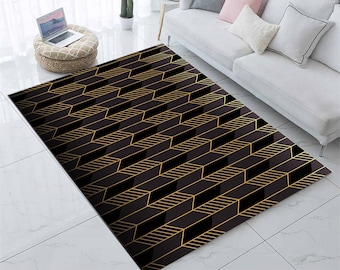 Art Deco Style Area Rug Golden Elements On Blue Background Etsy